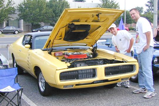 Below - Dave and Dan hamming it up next to a radical looking '72 Dodge Charger Rallye equipped with 440 cubic inches of V8.